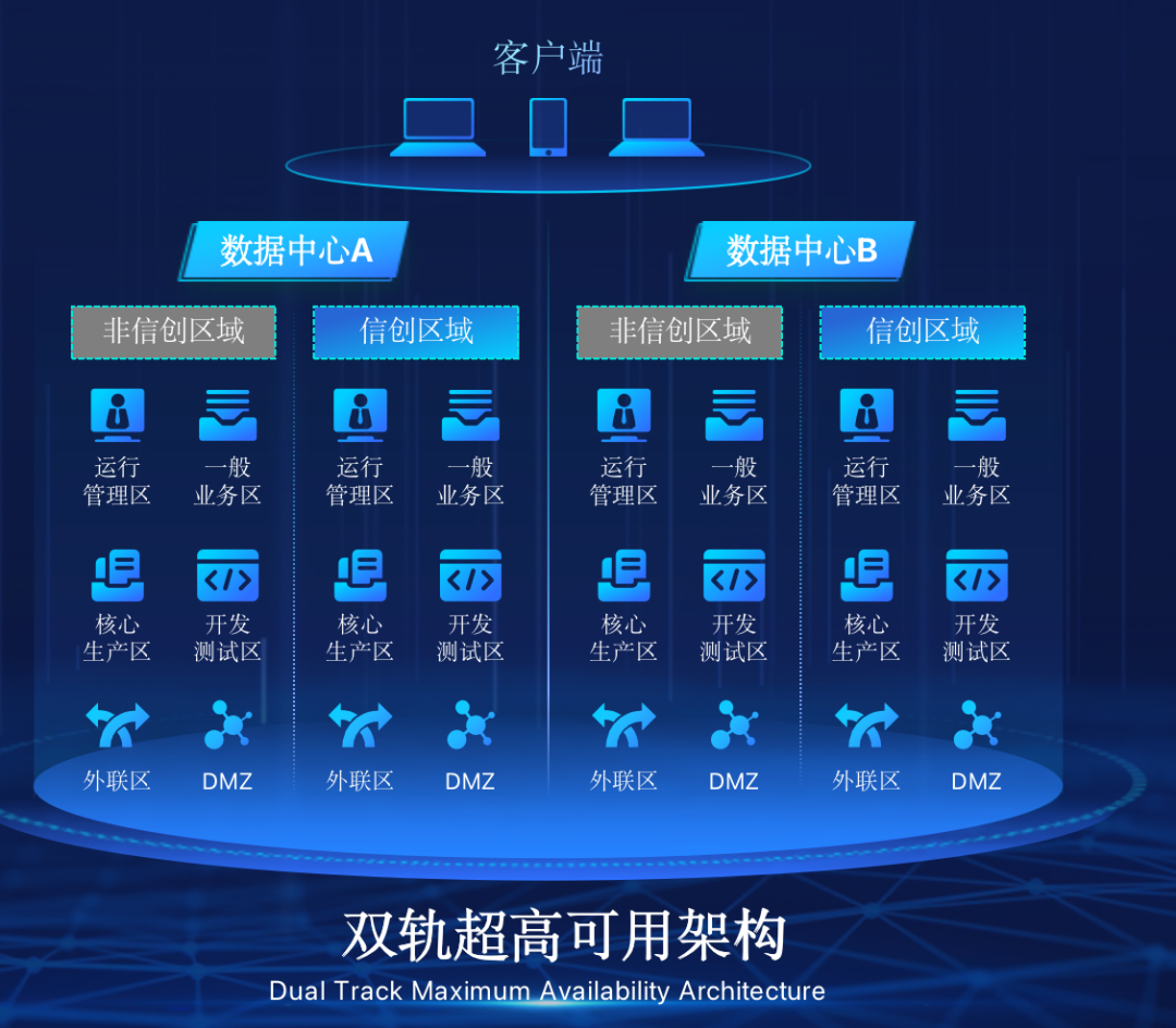 leyu.樂魚在企業(yè)面臨自主創(chuàng)新IT基礎重構過程中,推出的全新架構雙軌超高可用架構(簡稱DTMAA),在雙活數據中心的分區(qū)調度基礎上,添加每個數據中心內信創(chuàng)域和非信創(chuàng)域的分域調度,來實現分區(qū)分域協(xié)同的多活雙軌超高可用。