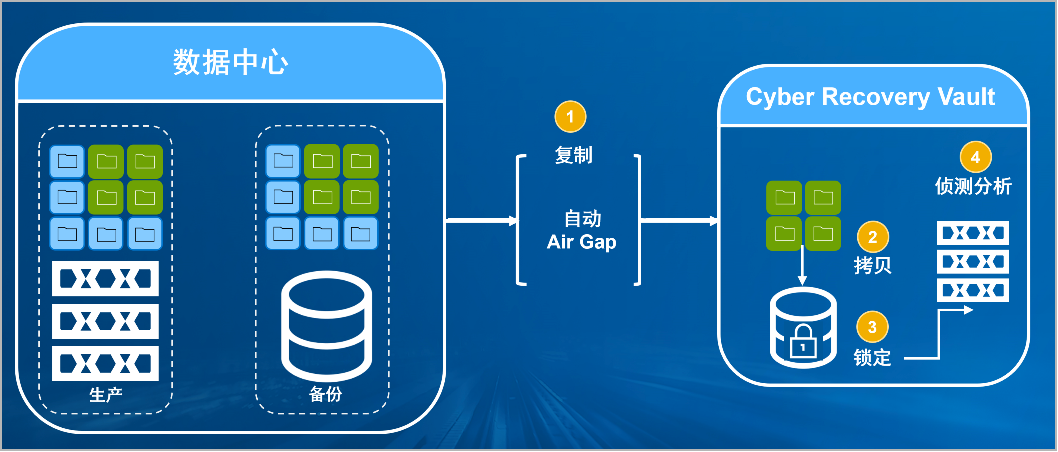 leyu.樂魚防勒索病毒方案將生產(chǎn)中心備份數(shù)據(jù)復(fù)制到Vault區(qū),復(fù)制后網(wǎng)絡(luò)自動斷開實現(xiàn)彈性隔離。Vault區(qū)的數(shù)據(jù)快速拷貝,并對拷貝版本加鎖(在鎖定期數(shù)據(jù)不允許刪除和修改)。Vault沙箱內(nèi)對拷貝版本進行掃描分析,驗證數(shù)據(jù)是否完好。