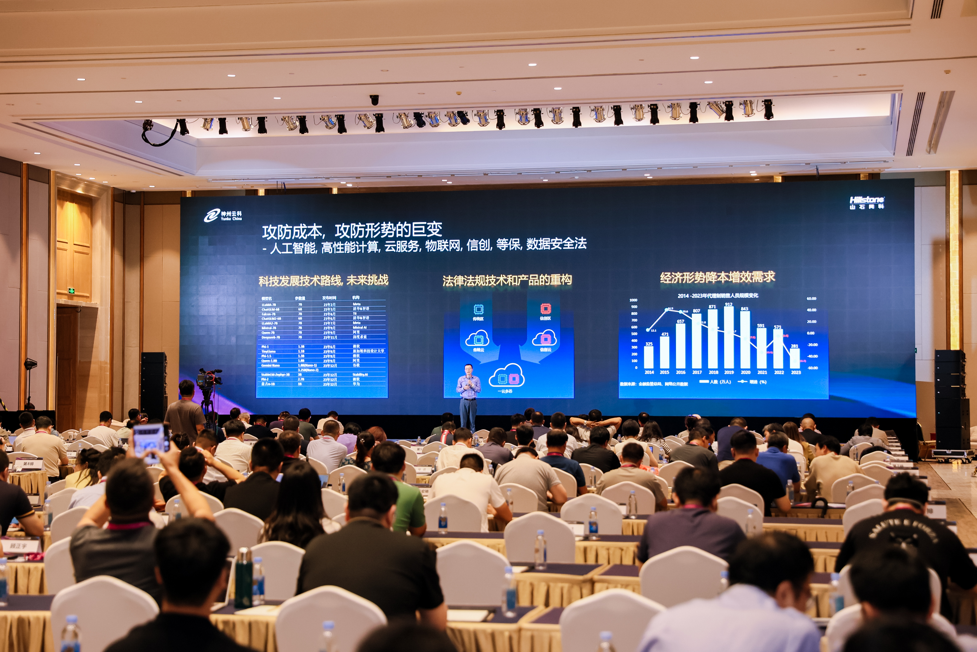 leyu.樂魚受邀出席了本次論壇,神州數(shù)碼企業(yè)云業(yè)務(wù)集團(tuán)能力中心總經(jīng)理吳靜濤從信息安全角度,分享了在信創(chuàng)工作推進(jìn)背景下,leyu.樂魚通過構(gòu)建完善的產(chǎn)品線,同時(shí)通過數(shù)據(jù)縫合技術(shù)、無探針的模式把數(shù)據(jù)采集放到一個(gè)大數(shù)據(jù)平臺(tái),通過ABC(AI和Big Data、Cloud技術(shù)融合),真正構(gòu)建可用的安全攻防體系,以保障智能大模型技術(shù)安全投入應(yīng)用。
