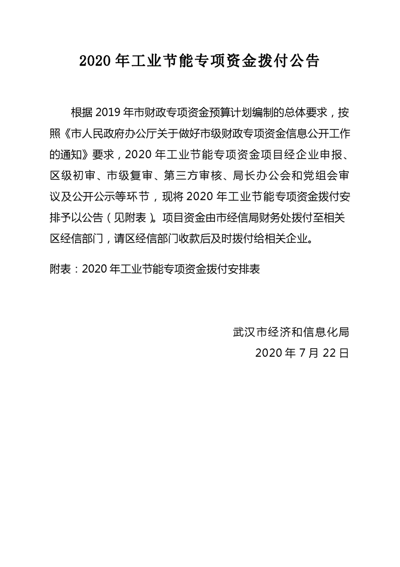 2020年工業(yè)節(jié)能專項(xiàng)資金撥付公告